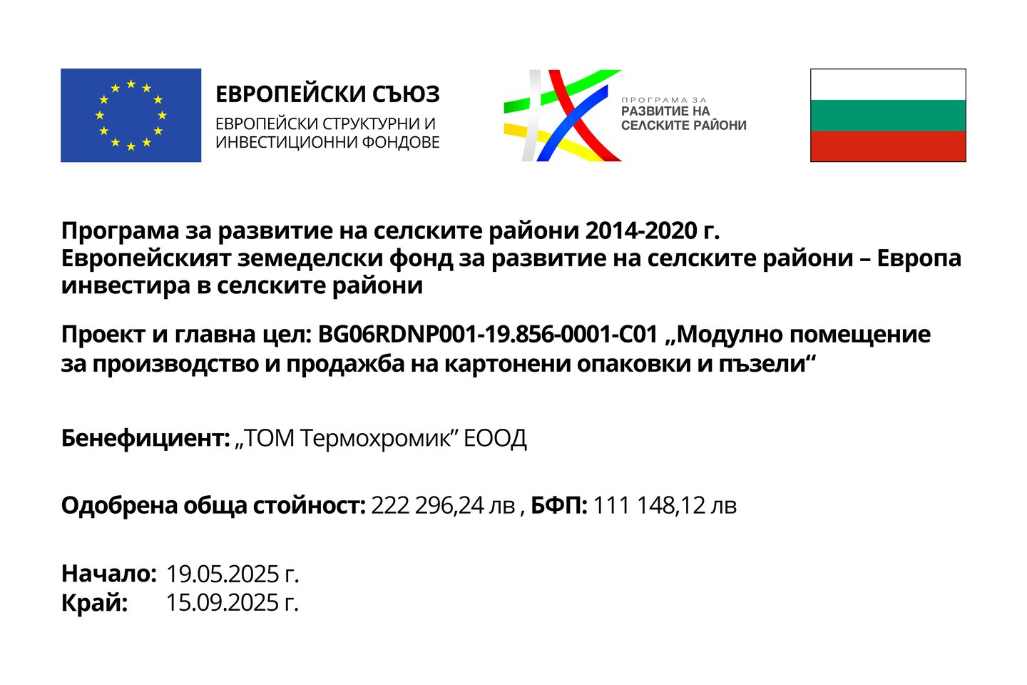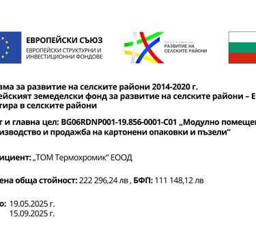 „ТОМ ТЕРМОХРОМИК“ ЕООД разполага с модерно модулно производствено помещение, изградено по съвременни стандарти за ефективност, безопасност и устойчивост.